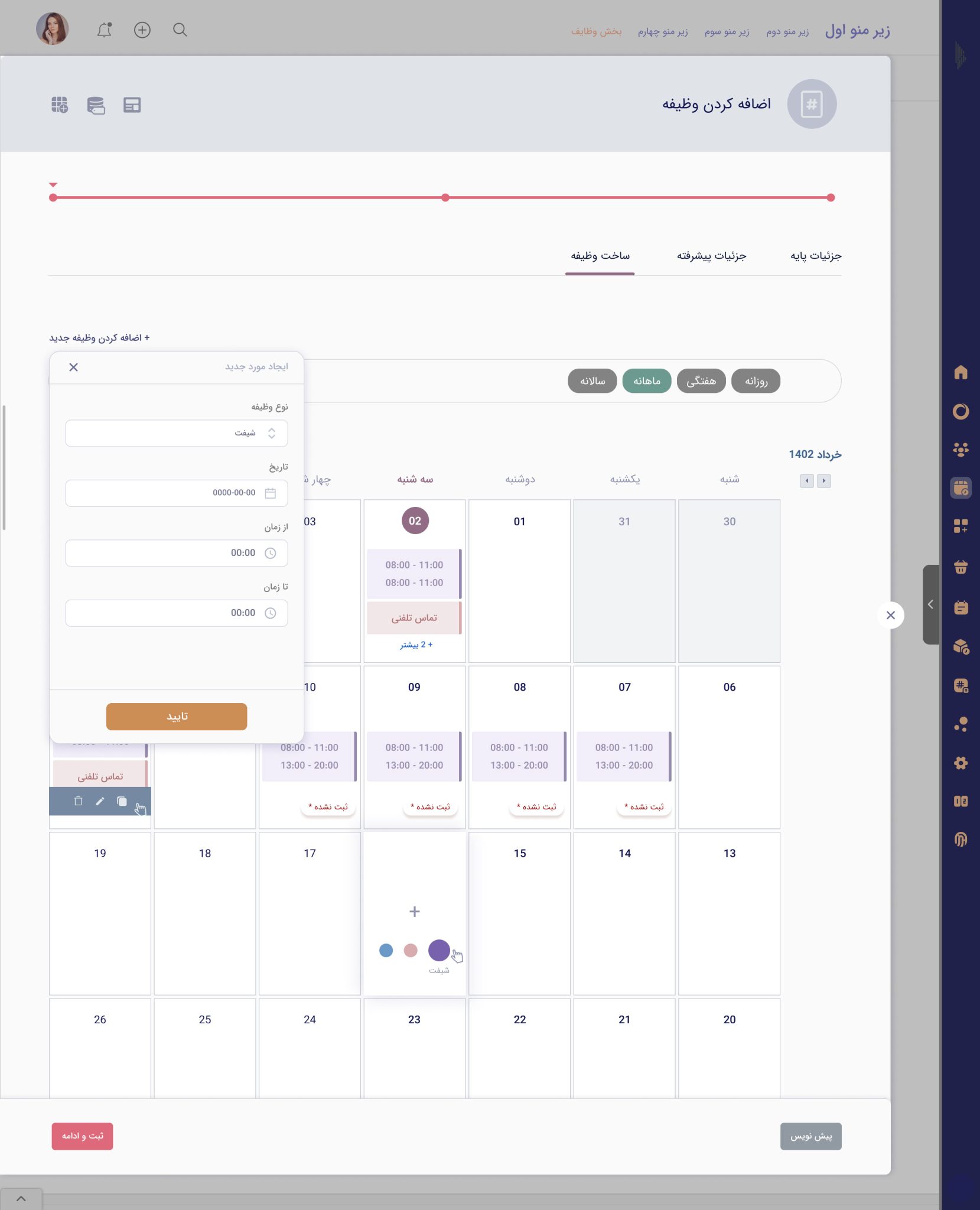 پروژه طراحی نرم افزار حضور و غیاب که در سال 1402 و بعنوان ماژولی در نرم افزاری جامع مورد استفاده قرار می گیرد. از ویژگی های اصلی یک پروژه حضور و غیاب برای هر کسب و کار می توان به مدیریت دقیق رفت و آمد پرسنل اشاره کرد. در نتیجه آن زمان کاری پرسنل و ورود و خروج آنها به صورت دقیق محاسبه شده و براساس آن حقوق و دستمزد افراد تعیین می گردد.